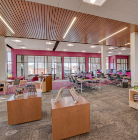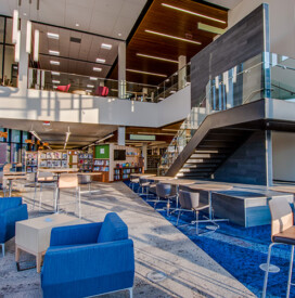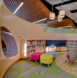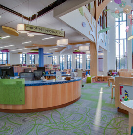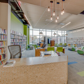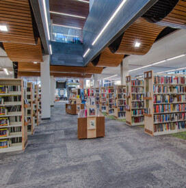 Construction of a new 45,000 SF, two-story free-standing library. The library is steel framed with metal deck, concrete floors, and metal bar joists. There are two roof top air handling units. The building has an automatic fire alarm system and is fully sprinklered. The library features an expandable meeting room capable of holding up to 388 people, quiet rooms, a reading room with working fire place, a youth services department, a circulation counter, and reference desk.