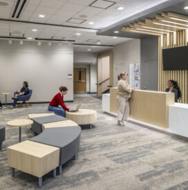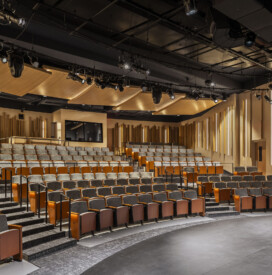 One of the client’s top priorities was to create a space that was both visually appealing and durable; one that would keep the space welcoming while also protecting valuable theater equipment and ensuring strong security when the theater wasn’t in use. Despite the challenges, the result is a thoughtfully modernized facility that meets the technical demands of the performing arts and fits seamlessly into the daily rhythm of student life.