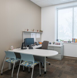 An existing 10,000 SF building was renovated into an in-house a print shop over 2 phases. The first phase replaced the existing single ply roof and insulation, the existing aluminum store front system, repaired and replaced the existing parking lot asphalt, installed a new covered “loading dock” platform, new site fence, landscaping, site lighting, and exterior coating on the exterior of the building. The second phase installed a new HVAC system, new data service to the building, new electrical wiring and lighting, new interior partitions, interior finishes and infilled the void below existing portion of slab on grade.