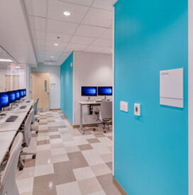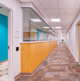The project is located on the 3rd floor of the Nationwide Children’s Hospital Lewis Center Close to Home. The project is a build-out of 4,050 SF located in a shell space. The project created 8 Sleep Lab rooms including an associated control room and support spaces.