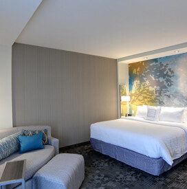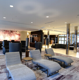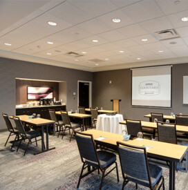 The Courtyard has 135 guest rooms including several Balcony Suites with views of downtown Columbus and features an indoor pool, an outdoor courtyard with a fire pit, and walk-up Bistro. In addition, The Grand Event Center features a full-service kitchen, a 4,500 SF ballroom, a pre-function social area, and several smaller meeting/break-out rooms.