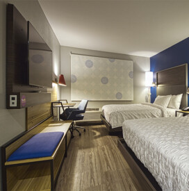 Tru by Hilton offers more efficiently designed rooms with a mobile desk; large bathrooms with premium bath amenities; in-room entertainment; a complimentary build-your-own breakfast bar; a spacious lobby with areas for guests to work, play games, eat and lounge, along with a 24/7 snack market.