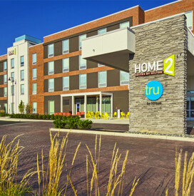 Newest Dual-Brand Hotel, Tru by Hilton and Home2 Suites by Hilton is open in Grove City, Ohio. The innovative four-story wood framed hotel project features 182 guest-rooms (91 Home2 Suites/91 TRU) with a shared lobby and amenity spaces totaling 95,924 SF.