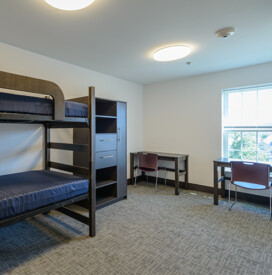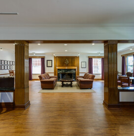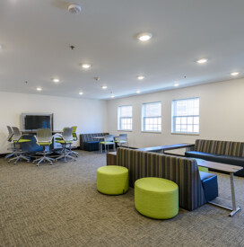 13,800 SF renovation features an academic study and living spaces with common areas. 11,900 SF 3-story addition features parking on the first floor and living space on the second and third floors.