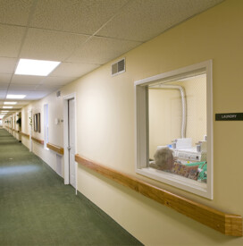 The second floor also has 40 units and also provides an exercise room, game room, and wellness center that has private rooms for visiting physicians and practitioners. The wellness center also has a whirlpool tub and loft overlooking lounge below. Each floor has two laundry facilities.