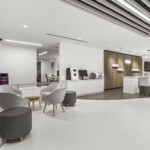 We transformed the front-of-house space from what had once been a tired, outdated office area on the manufacturing side of the plant into a modern, hybrid environment tailored to the client’s needs. The previous space, with its aged ceiling tiles and drab finishes, did not reflect the innovation of Planmeca. With direction from the overseas corporate owners, who had a precise vision for the renovation, we delivered a clean, contemporary aesthetic that mirrors the feel of a medical clean room. Crisp white finishes, meticulous detailing and abundant lighting were used throughout to achieve the pristine, high-tech look the client required, creating a space that feels both welcoming and reflective of their advanced dental technology.